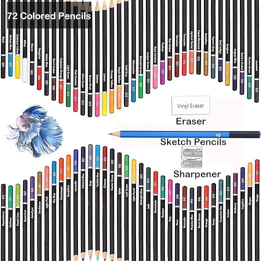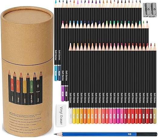 - 【PACKAGE INCLUDE】: Colour Pencils Set 72 colours pencils, 1 Sketch Pencil, 1 Eraser, 1 Sharpener, 1 Cylinder case ,A professional set of coloured pencils, perfect gift for artist, family, friend, daughter, student, traveling, beginners, valentines day, mother’s day, Christmas, new year, birthday, Halloween.